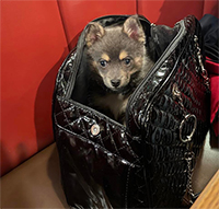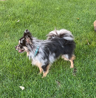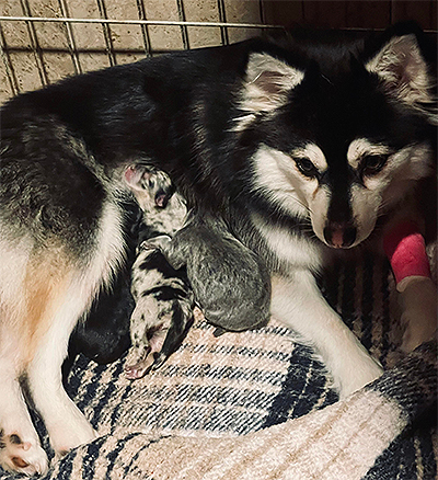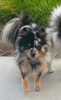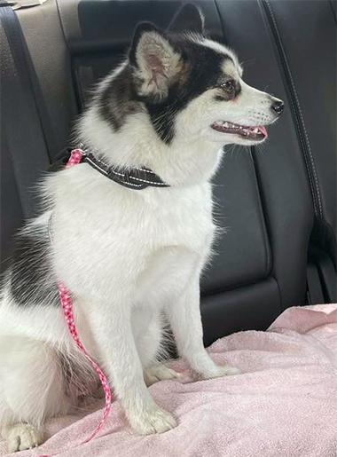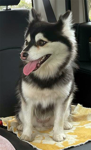 F2 Pomsky “Kona” Embarked female. Black/White colored. Kona weighs 12 pounds. |