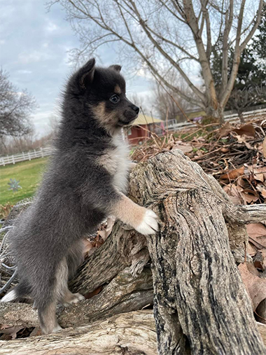 We started out owning a Husky but once we saw a Pomsky we knew this was a perfect fit for our home, farm and life style.